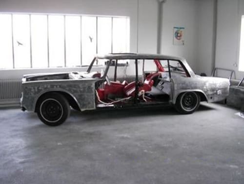 Ein anschauliches Beispiel zeigt ein bei uns vollständig restaurierter Mercedes 600, der ursprünglich in Papyrusweiß (Farbcode 717) ausgeliefert wurde. Zwischenzeitlich wurde das Fahrzeug in Schwarz umlackiert – doch der Kunde wünschte sich die Rückkehr zur Originaloptik.